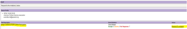 Once you log in, you’ll see an option to respond to a virtual meeting presentation invitation. Click “Respond to Invitation:”