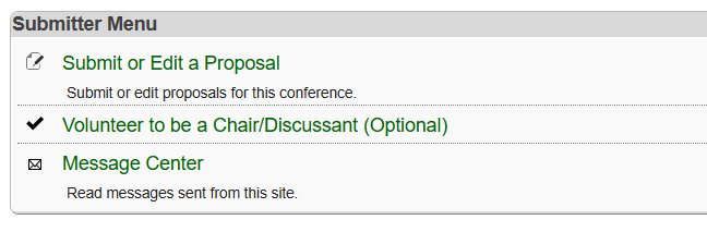 After submitting your proposal, you’ll receive a confirmation email and a unique submission ID number. Please save both for future reference. If you don’t receive a confirmation email within 24 hours, contact meeting@apsanet.org for assistance.