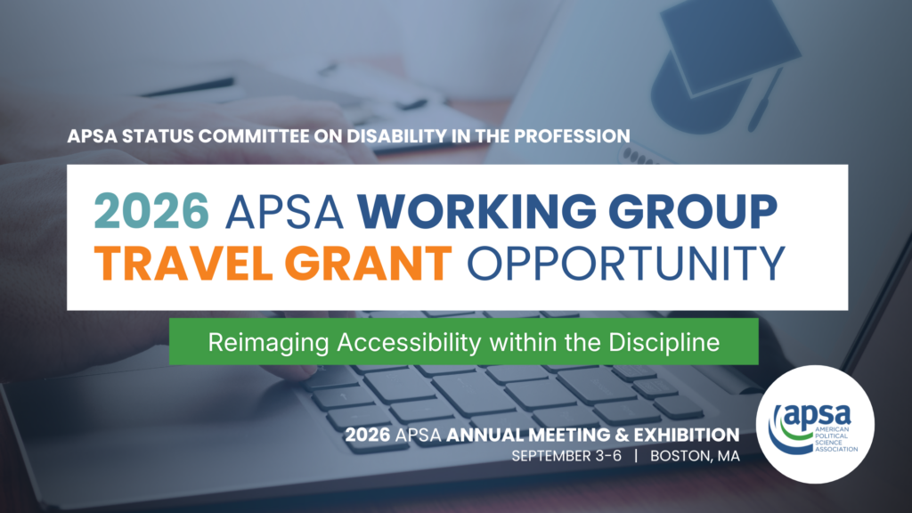 Travel Grant Opportunity: APSA Working Group on “Reimaging Accessibility within the Discipline” at the 2026 APSA Annual Meeting | Application Deadline: May 15, 2026