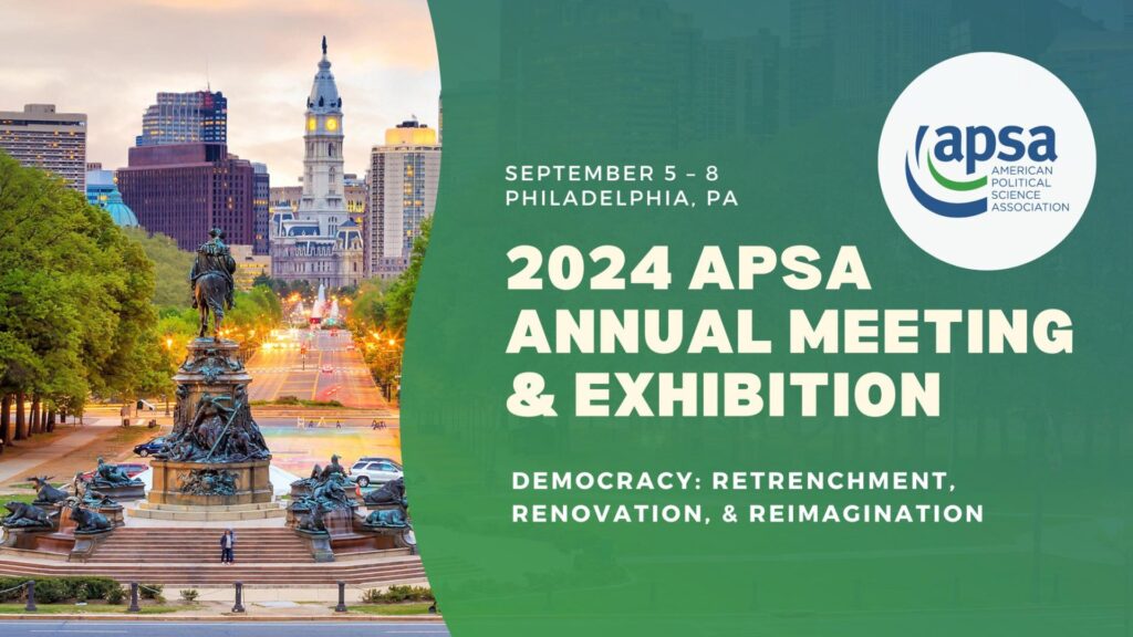 The inaugural JPSA-APSA Working Group on “Civically Engaged Research for Critical Issues in Society” was held alongside the 2024 APSA Annual Meeting & Exhibition, from September 4-7, in Philadelphia, PA. The program theme was Environmental Politics, and included topics such as climate change, disaster preparation and response, management and conflict over natural resources, and environmental politics in elections and legislative coalitions.