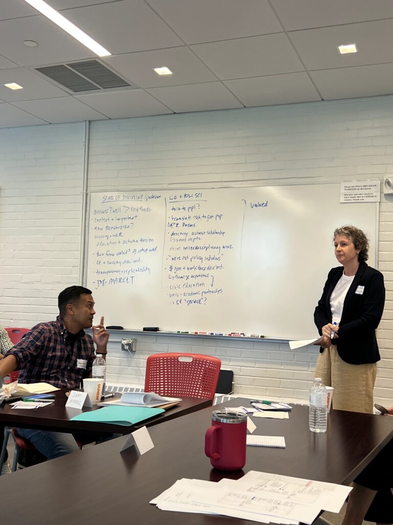 Together with practitioner experts and scholarly guest speakers, ICER Directors and Fellows explored key topics related to civically engaged research by discussing relevant readings, analyzing specific examples of civically engaged research from political science and cognate disciplines, and considering the research plans and ideas of institute participants.