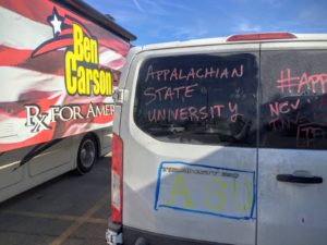 20 students and faculty from Appalachian State University will depart from Boone, NC on January 30, 2020, on a 14-hour van journey to Iowa for #App2Iowa 2020. While in Iowa, the group will attend a wide variety of campaign events, meet with several campaign staffers, and hopefully experience the unique energy of the first-in-the-nation Iowa Caucus. We will spend four days traveling throughout the state chasing candidates and depart on February 3rd after serving as caucus observers for several precincts in Iowa City.