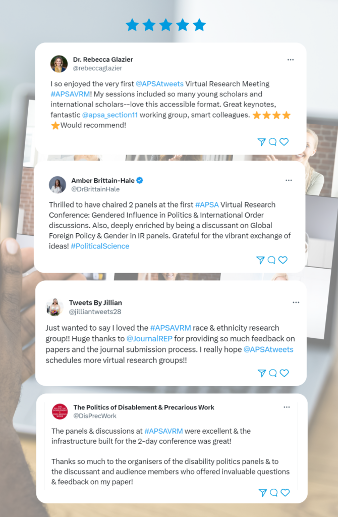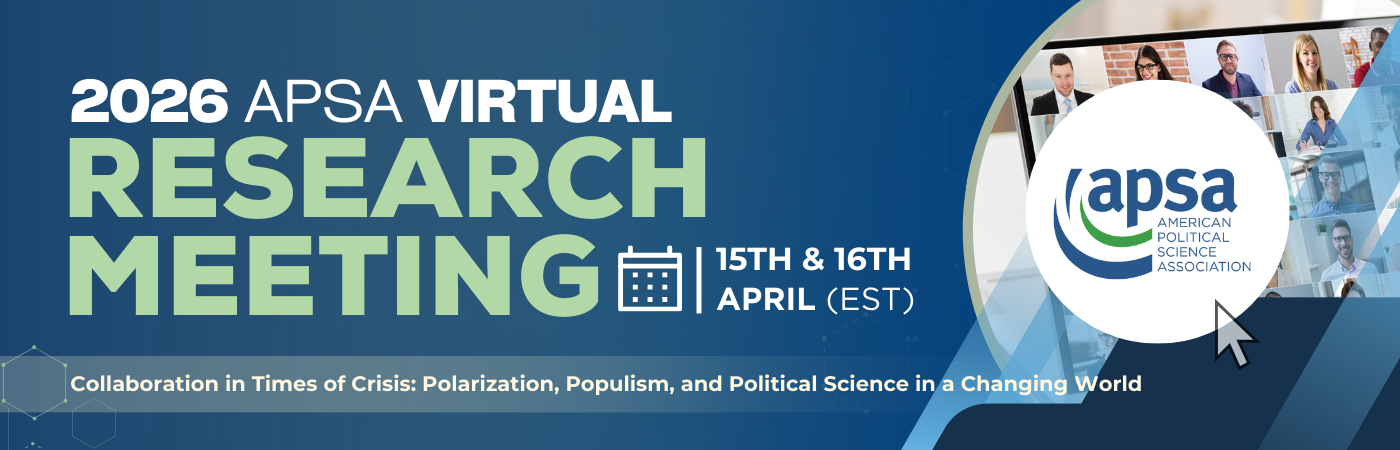 Join scholars virtually for the American Political Science Association’s (APSA) Annual Virtual Research Meeting, held on April 15th & 16th, 2026 (ET), featuring forums for scholars to share their latest political science research exploring the conference theme, “Collaboration in Times of Crisis: Polarization, Populism, and Political Science in a Changing World.”